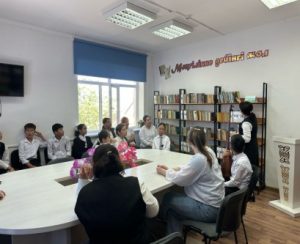 Шараға ақын атамыздың жары Шерімбетова Шәрипа апа отбасымен, Жаңақорған тынысы газетінің тілшісі Жамила Ермаханқызы, №56 мектептің 6 сынып оқушылары мен сынып жетекшісі К.Жақыпова қатысты. Кітапхана меңгерушісі М.Жиенбаева шараны ашып беріп, ақынның өмірбааянымен таныстырды, балалар ақынның өлеңдерінен мәнерлеп оқып берді, «Қыз бен бала айтысынан» үзінді көрсетті. «Балалар жүрегінің бағбаны» атты кітап көрмесімен кітапханашы А.Шарапова таныстырып, ақынның шығармашылығына тоқталып өтті. Адырбек атамыздың немересі Адырбеков Алихан «Менің әліппем», «Сурет салдым» өлеңдерін оқып берді. Кеш соңыңда Шарипа апаға сөз беріліп, ақынның жақсы қырларын баяндап, балаларға үлгі боларлық қасиеттерін айтып берді. Балалар да апаға өздерін қызықтырған сұрақтарын беріп, апа бәріне жауап беріп отырды. Шара соңында қонақтарға естелік сыйлықтар беріліп, қатысушыларға естелік ретінде А.Сопыбековтің «Ақбаян» кітабы тарқатылды. Шараға 20 адам қатысты.