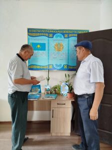 Көрме барысында Қазақстан Республикасының Туы, Елтаңбасы, Әнұраны жайлы кітаптар, мақалалар мен фотоматериалдар қойылып, қатысушыларға таныстырылды. Кітапхана қызметкері рәміздердің шығу тарихы туралы қысқаша шолу жасап, оқырмандарды рәміздерге құрметпен қарауға шақырды.