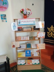 Кітапхананың тұрақты оқырмандары “Көзімнің қарасы”, “Желсіз түнде жарық ай” әндерін нақышына келтіре орындады. Абайдың өмірі мен шығармашылығы жайлы презентация көрсетілді.